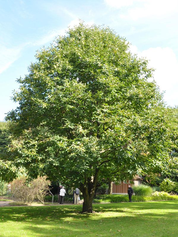 Die Edelkastanie, auch Marone, Esskastanie, Essbare Kastanie genannt, stammt ursprünglich aus Kleinasien. Sie wird nicht nur im Waldbau erfolgreich eingesetzt, sondern auch wegen ihrer äußerst nahrhaften, wohlschmeckenden und zudem gut lagerfähigen Früchte geschätzt. Bei uns gedeiht sie hauptsächlich in mildem Weinbauklima. In rauheren Lagen reifen die Früchte nicht aus.