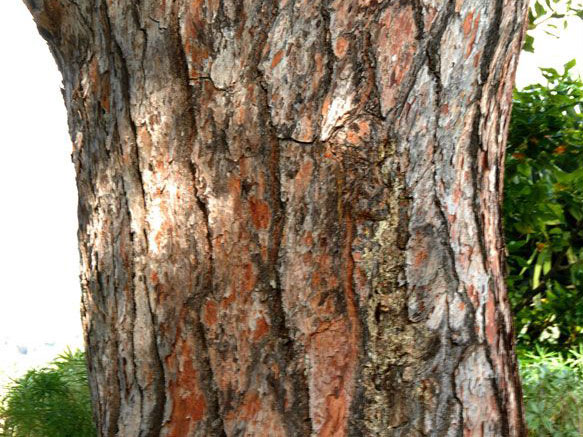 Der breite Stamm verläuft zylinderförmig nach oben und erreicht einen Brusthöhendurchmesser von ca. einem Meter. Die Stämme bleiben meist sehr kurz und bilden bereits nach wenigen Metern Doppelspitzen aus. Das kann man aber durch einen engen Pflanzabstand verhindern. So ziehen sich die Pflanzen gerade und astrein in die Höhe.