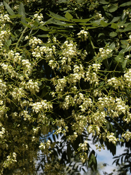 Zwischen August und September erscheint eine wundervolle Blütenpracht, die eine besonders wertvolle und reichhaltige Bienennahrung darstellt, vor allem weil diese direkt nach der Robinie blüht und somit das Nahrungsangebot für die Bienen entscheidend erweitert werden kann. Im Herbst bilden sich bis zu 8 cm lange Schoten, die erbsengroße Früchte ausbilden. Außer den Blüten ist auch das Holz dieses Baumes begehrt, da es hervorragend für Möbel aller Art und als Parkett verwendet werden kann