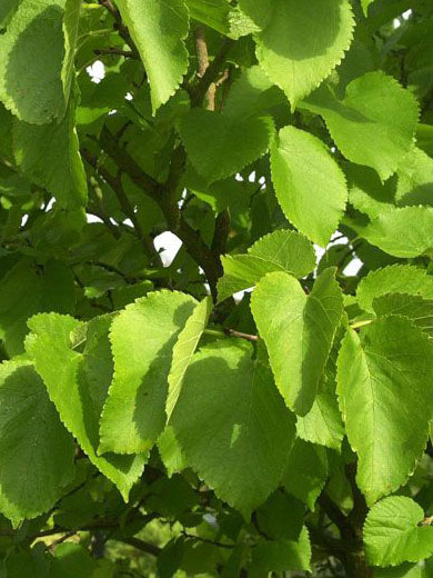 Die Blätter der schwarzen Maulbeere sind herzförmig mit gezacktem Rand. Sie erreichen einen Durchmesser von ca. 8 cm und werden ca. 12 cm lang.