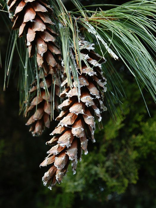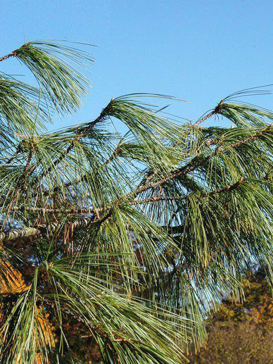 Der Name Tränenkiefer stammt von den langen, weichen und hängenden Nadeln, welche in 5er-Bündeln zusammenstehen und wie einzelne Tropfen aussehen, wenn man den Baum von weiterer Entfernung betrachtet. Die einmaligen Zapfen runden dieses wunderschöne Bild noch ab. Diese sind bananenförmig und bis zu 35 cm lang. Sie werden gerne zur Dekoration für Floristen benutzt. Wie alle Kiefern hält auch Pinus wallichiana die Nadeln sehr lange. Deshalb wird sie auch gerne für die Schnittreisigproduktion verwendet. Die langen und blauen Nadeln machen das Schnittreisig zu etwas ganz Besonderem!